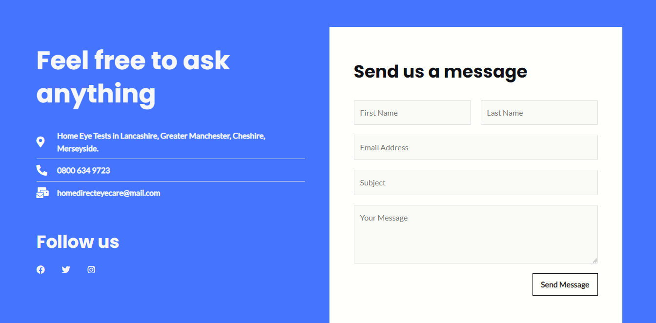 Here’s a description for a Home Direct EyeCare: "Home Direct EyeCare is an innovative platform that brings comprehensive eye care directly to your home. The website offers a range of services designed for convenience and accessibility, including virtual eye exams, online prescription services, and an extensive selection of eyeglasses and contact lenses. Users can easily schedule consultations with licensed eye care professionals, access educational resources on eye health, and benefit from a user-friendly interface that simplifies the process of managing their vision care. With a focus on privacy and security, Home Direct EyeCare ensures that all personal information is protected, providing a seamless and trustworthy experience for maintaining and enhancing your eye health from the comfort of your own home."